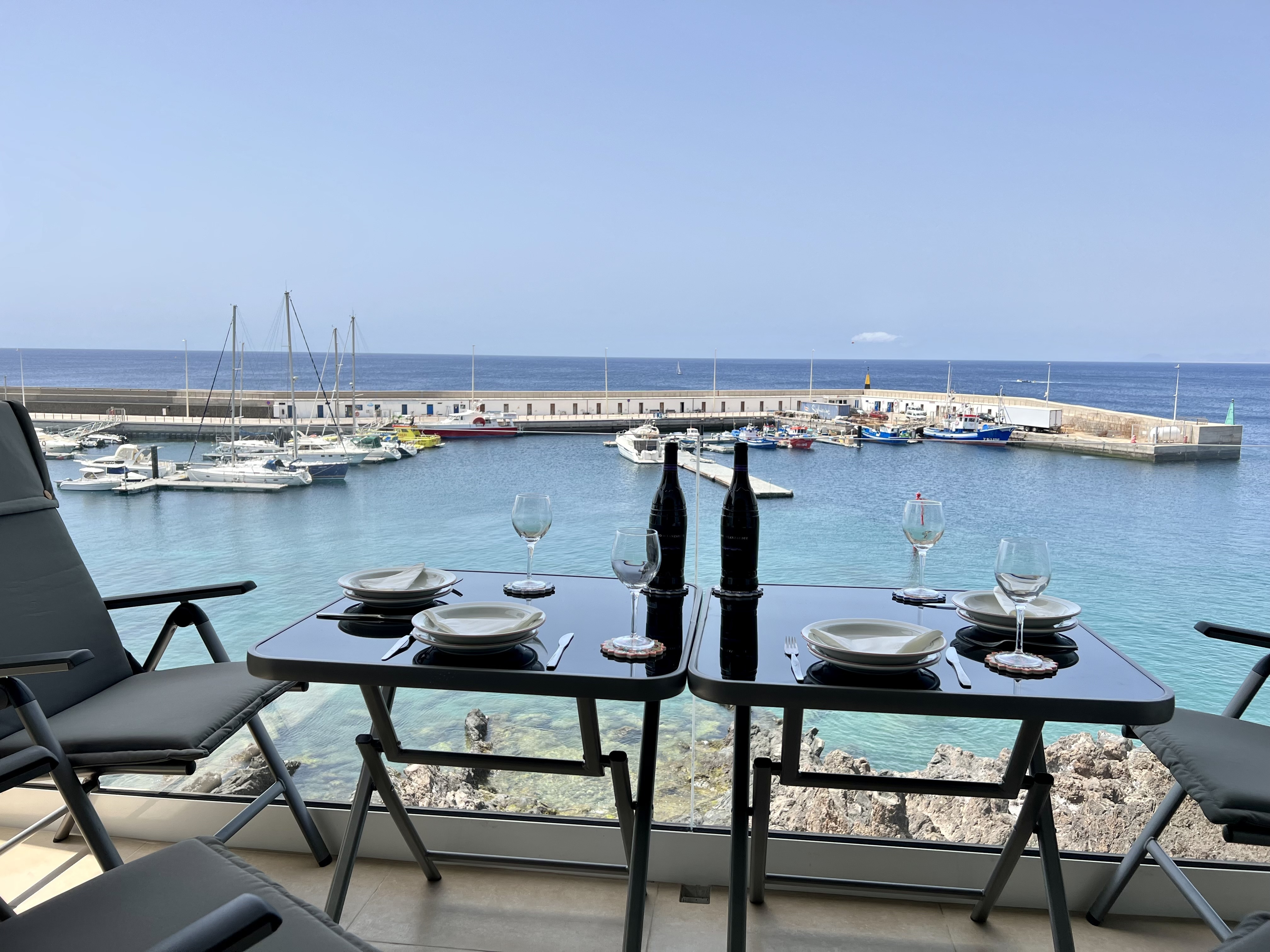 A spacious private balcony provides an outdoor dining table and chairs — perfect for relaxing, dining, or simply enjoying the magnificent sea and harbour views.