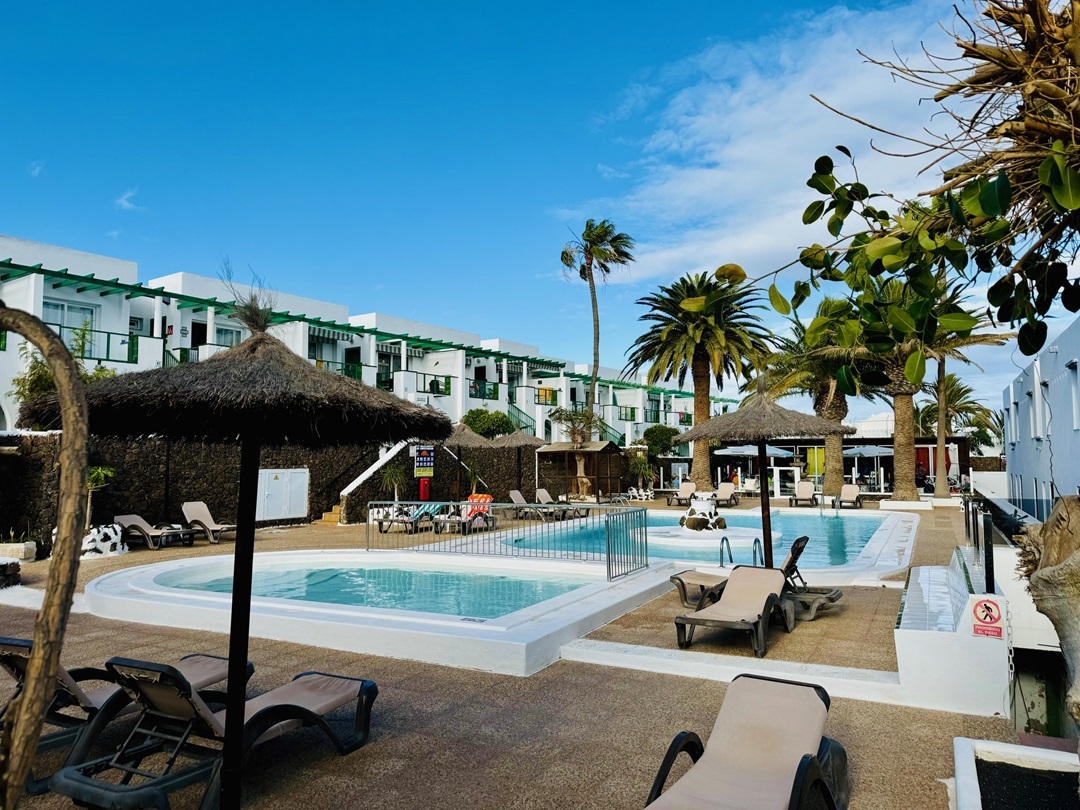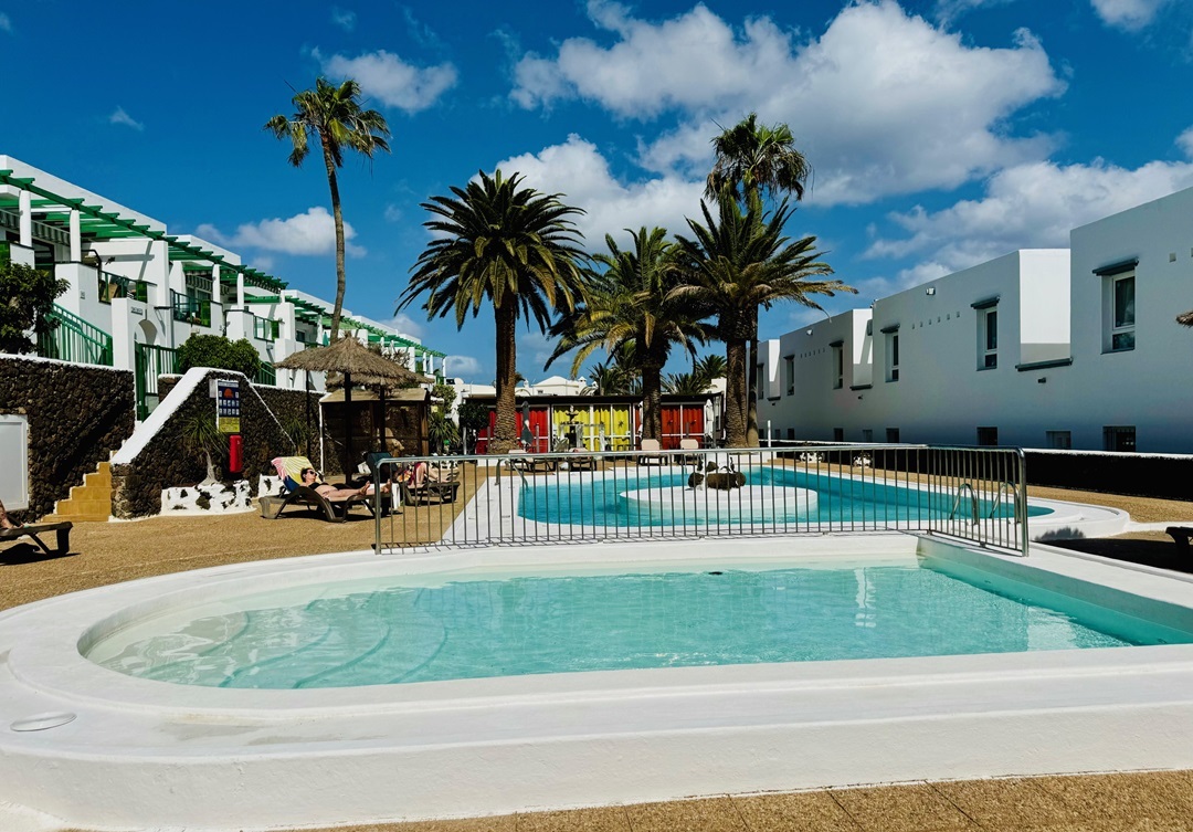 Set within landscaped gardens, the complex features a main outdoor swimming pool, a separate children’s pool, and spacious sun terraces with loungers — perfect for relaxing under the Lanzarote sun. Guests can enjoy a poolside snack bar, a convenient mini-market, and coin-operated laundry facilities. The atmosphere throughout is relaxed and family-friendly, making it an ideal choice for a peaceful stay.