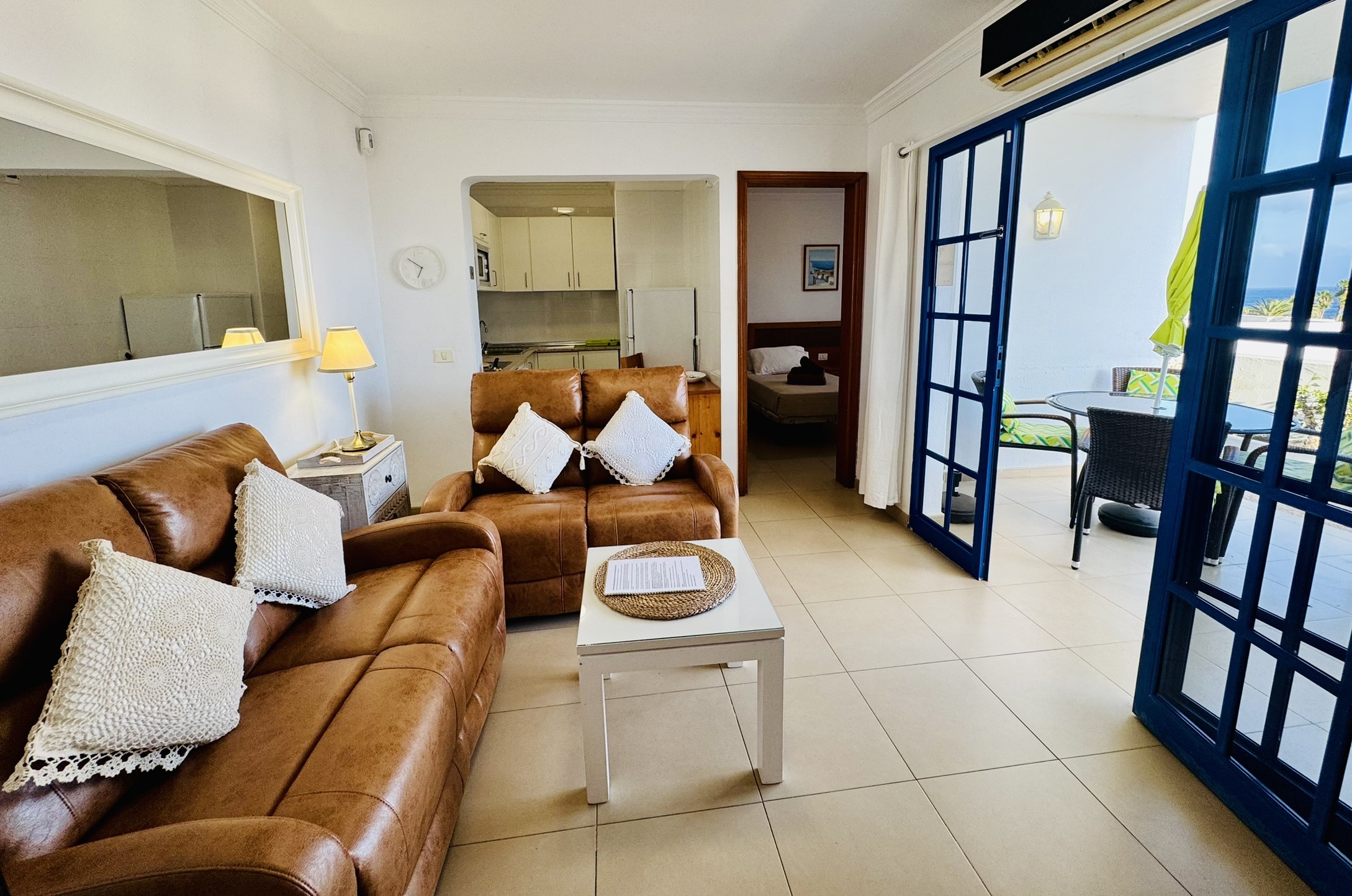| Welcome to Atalaya Apartment VistaMar, where comfort and panoramic sea views await you for a truly memorable holiday in Lanzarote. This bijou two-bedroom, two-bathroom apartment boasts amazing ocean vistas from each bedroom as well as from its south-facing terrace, making it the ideal retreat for couples or families seeking excellent value in a bright, airy setting. | Two bedroom Holiday Apartment with Panoramic Sea Views in Lanzarote |